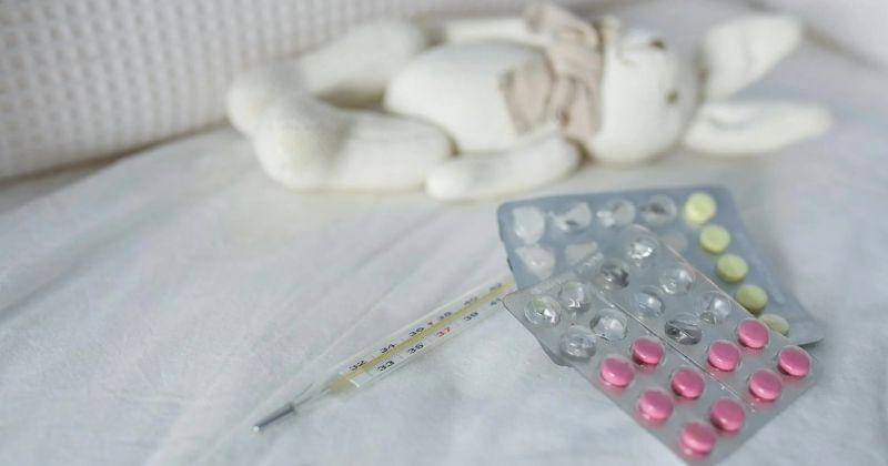 Bawa obat flu dan batuk yang direkomendasikan dokter, serta perlengkapan medis seperti termometer, tisu basah, dan minyak telon untuk meredakan gejala anak.