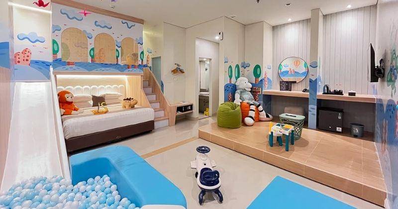 Terletak di kawasan strategis Malioboro, salah satu pusat wisata terkenal di Yogyakarta, hotel ini menawarkan berbagai fasilitas yang ramah anak dan cocok untuk liburan keluarga. Contohnya seperti adventure room dengan konsep kamar seperti playground yang pastinya bisa bikin si Kecil gak mau keluar dari kamar.