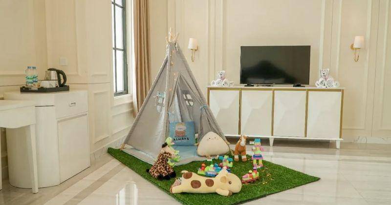 Fasilitas dari hotel ini juga gak main-main lho, Ma. Beberapa diantaranya ada taman, playground, kolam renang, gym, hingga rumah pohon. Tidak hanya itu, buat yang nginap di hotel ini akan diberikan benefit gratis masuk Suraloka Zoo.