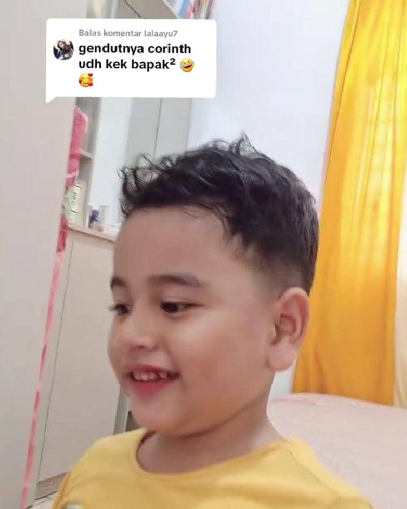 Dengan perlahan, lelaki kecil dengan jumlah pengikuti sudah lebih dari 388 ribu pengguna di TikTok itu pun mulai membaca komentar seorang netizen yang berisikan, "Gendutnya Corinth sudah kayak bapak-bapak."