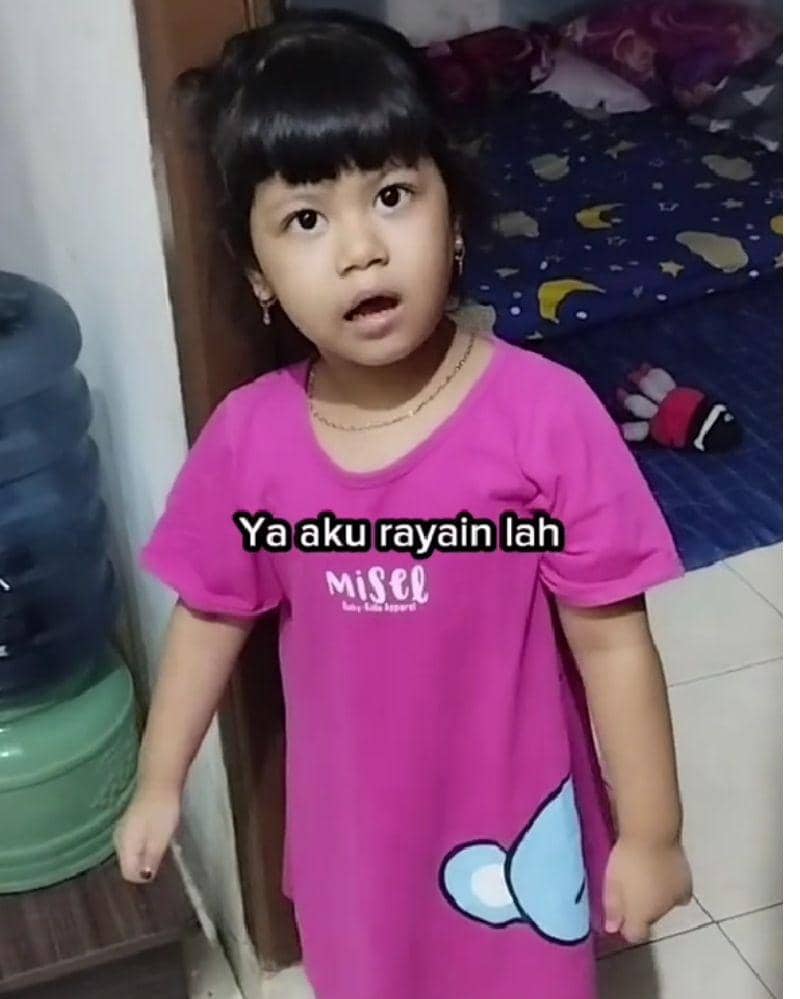 Meledek sang anak yang penuh emosi, Papa dari anak tersebut lantas bertanya lalu mengapa jika hari ini adalah hari ulang tahunnya. Gadis kecil itu lantas kembali menjawab dengan gemas, "Ya aku rayain lah!"