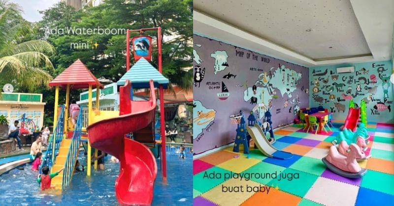 Hotel ini menyediakan fasilitas untuk anak-anak, seperti waterboom mini, playground, edukasi pemadam kebakaran setiap akhir pekan, dan si Kecil juga bisa belajar menanam yang nantinya akan mendapat sertifikat serta membawa pulang tanamannya. Jadi, anak tidak hanya bermain, tetapi juga bisa mendapatkan edukasi. Seru ya, Ma!