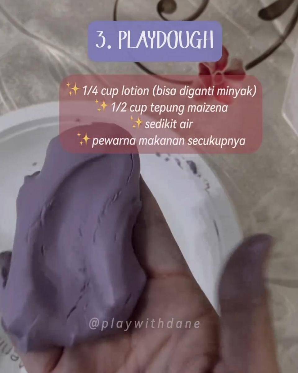 - Satukan semua bahan hingga menjadi tekstur playdough yang diinginkan anak.
