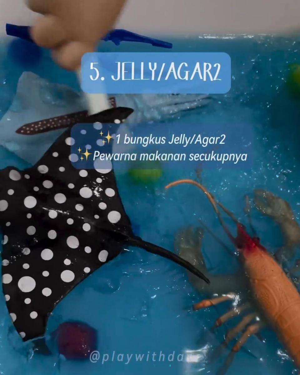 Jelly atau agar-agar dapat dijadikan bahan sensory play yang menarik untuk dibuat di rumah. Manfaatnya bisa merangsang indra perabaan, penciuman, penglihatan, hingga membantu anak mengenali rasa lewat indra pengecapan.