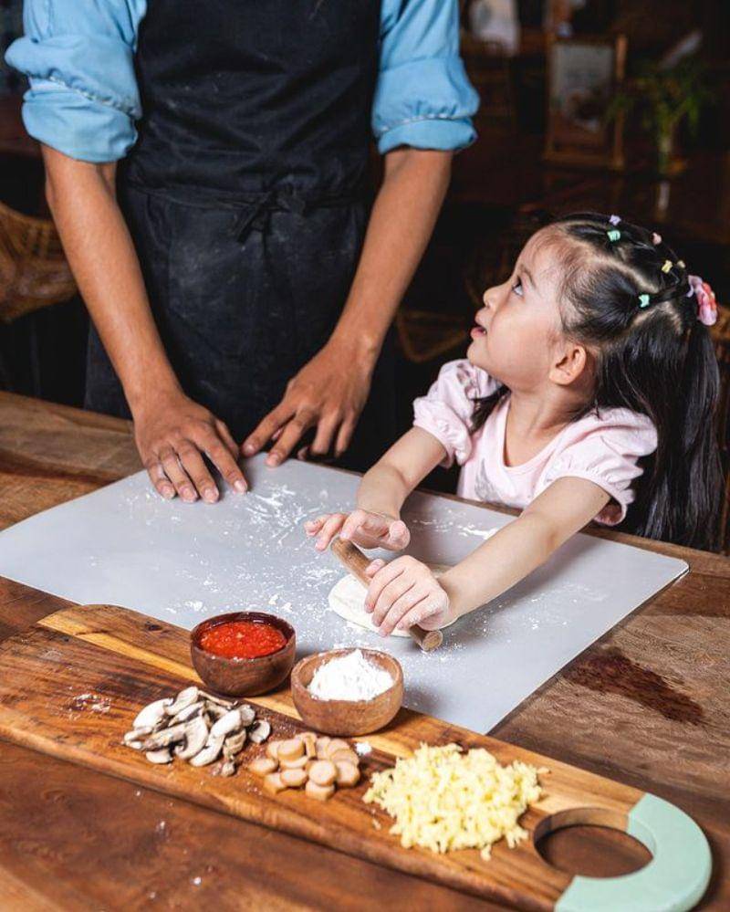 Dengan harga yang ditawarkan, anak nantinya akan dibantu oleh seorang pemandu yang sudah andal dalam membuat pizza. Biar lebih menyerupai chef, anak pun akan mendapatkan apron untuk mereka gunakan saat membuat pizza.