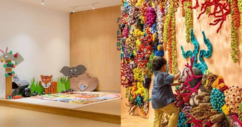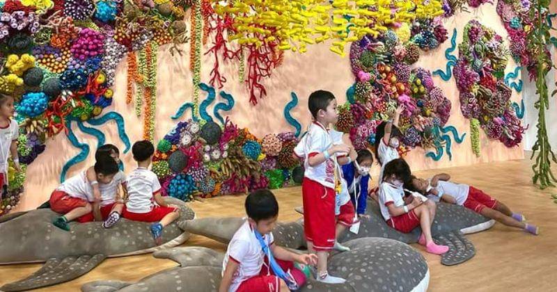 Salah satunya instalasi bawah laut yang menggambarkan bagaimana keindahan laut dengan cara yang menyenangkan untuk anak ketahui. Dibuat dengan bahan yang ramah anak, si Kecil pun dapat dengan mudah menyentuh instalasi tersebut untuk merangsang motoriknya.