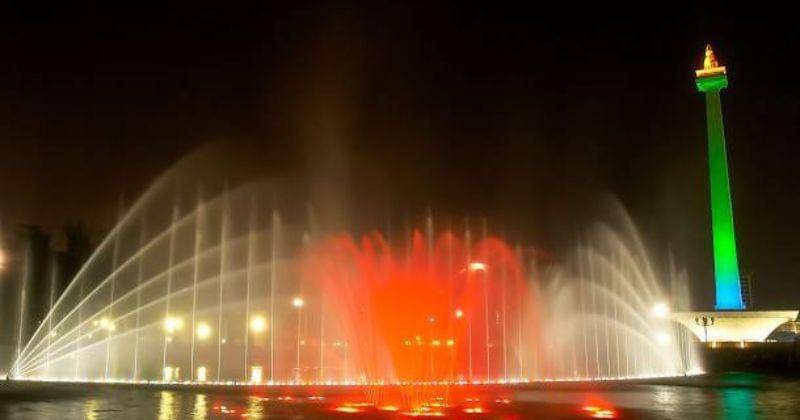 Nikmati Wisata Malam Pertunjukan Air Mancur di Monas Jakarta