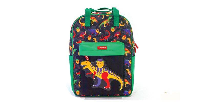 Sepanjang badan tas sendiri dipenuhi ddngan model bertema dinosaurus. Tasnya sendiri dibuat dari bahan cordura yang kuat dan tahan lama serta mudah dibersihkan.