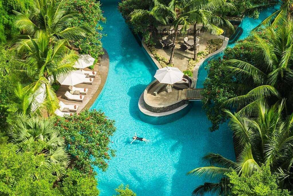 Staycation di Jakarta Barat ini, yang hanya berjarak sepuluh menit berjalan kaki dari Mall Taman Anggrek, memiliki suasana tropis karena banyak area dipenuhi pepohonan. Untuk anak-anak, ada kolam renang anak dengan desain pantai dan pasir putih.