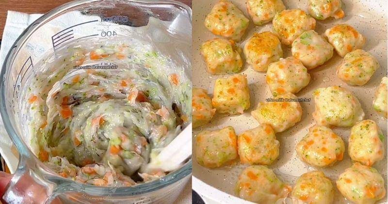 - Tambahkan wortel dan brokoli cincang ke dalam adonan udang.