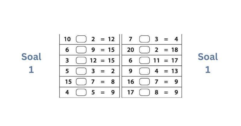 1. Beri tanda pengurangan (-) atau penjumlahan (+) pada kolom yang kosong di bawah ini!