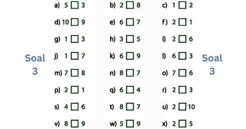 3. Beri tanda kurang dari (<) di bagian tengah kotak jika angka sebelah kiri lebih kecil dibandingkan angka kanan!