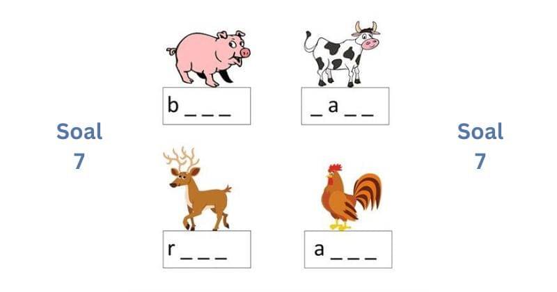 7. Tulis nama-nama hewan di bawah ini!