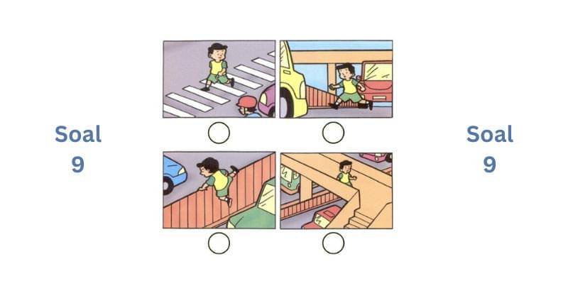 9. Beri tanda (✓) untuk cara menyeberang yang benar dan tanda (X) untuk cara menyeberang yang salah!