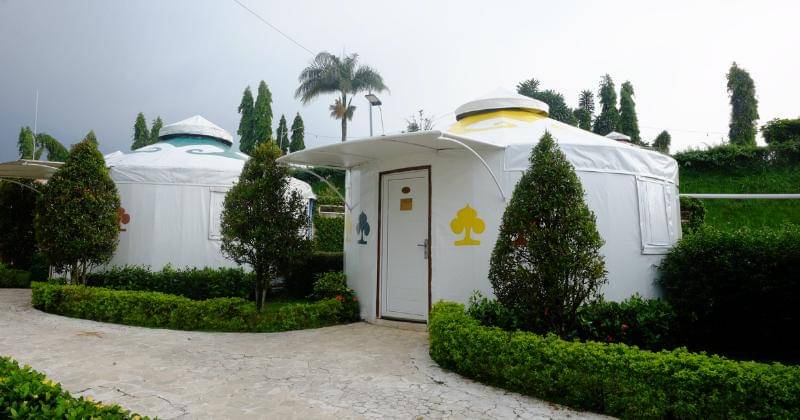 Highland Park Resort adalah destinasi glamping premium yang menawarkan pengalaman unik dengan tema Mongolia dan Indian. Keluarga akan disuguhi fasilitas ala hotel berbintang yang lengkap, termasuk kasur empuk, pendingin ruangan, dan kamar mandi pribadi. Anak-anak pasti akan senang bermain di taman air mini atau mencoba aktivitas outbound yang tersedia di lokasi.