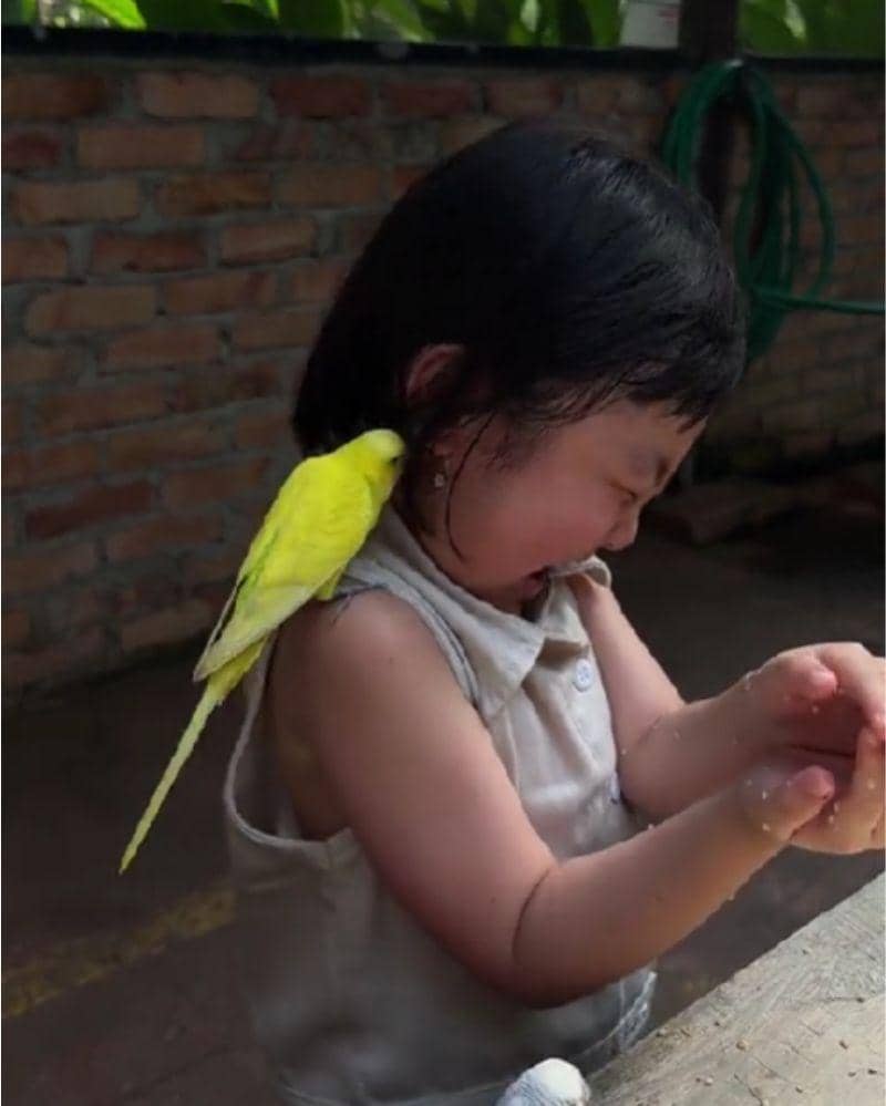 Di detik pertama video tersebut, seekor burung berwarna kuning sengaja diletakan di bahu gadis kecil tersebut untuk melihat keberaniannya. Bukannya menangis atau teriak karena ketakutan, Nala justru tertawa girang karena kegelian saat dikelitiki burung tersebut.