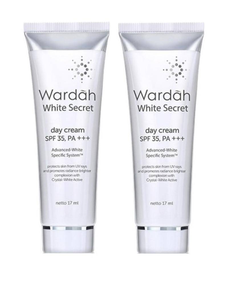 Wardah White Secret Day Cream merupakan produk perawatan wajah yang diformulasikan untuk mencerahkan kulit dengan kandungan undecylenoyl phenylalanine, yang efektif mengurangi noda hitam akibat penuaan atau hiperpigmentasi.