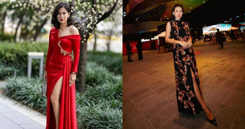Nah, gaya Shenina nggak kalah keren, sih! Ia memakai dress panjang, berwarna merah-kecokelatan, dengan belahan yang cukup tinggi. Desain sweetheart neckline membuat dirinya terlihat manis dalam busana karya Hian Tjen.