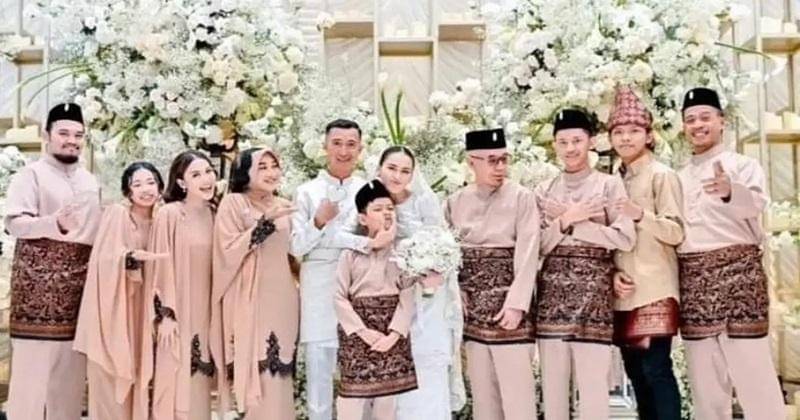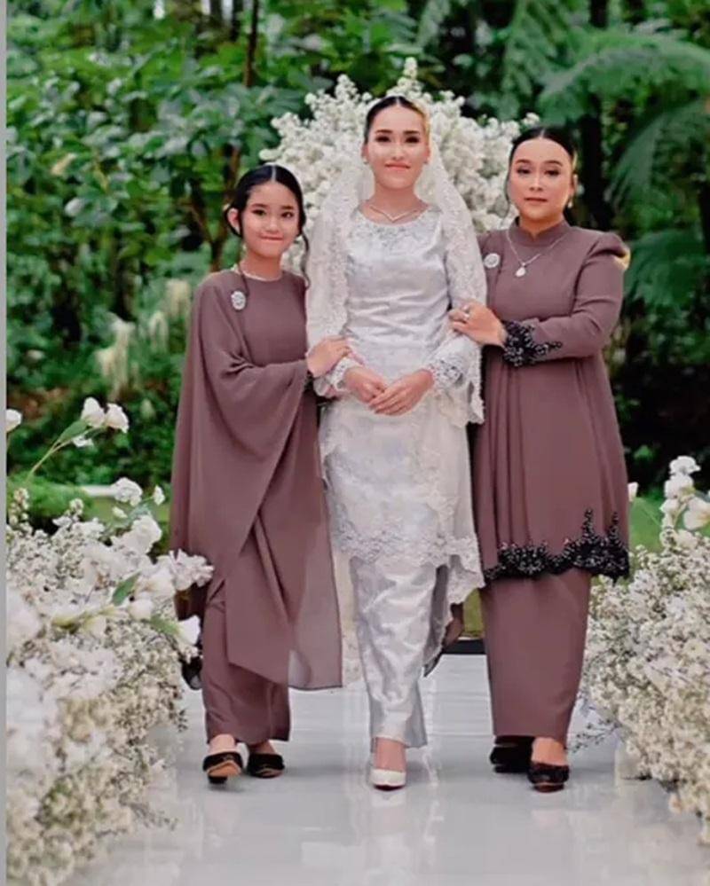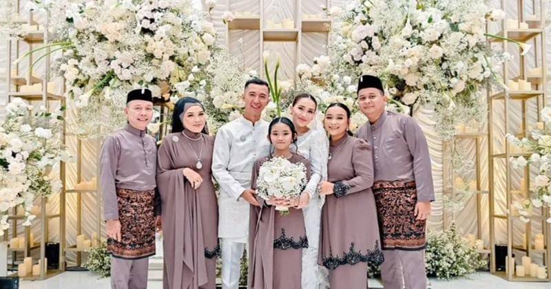 Berbeda dengan keluarga Ayu, keluarga besar Dana mengenakan outfit berwarna cokelat muda. Sedangkan Dinar Salsa, sang calon adik ipar Ayu terlihat mengenakan kaftan berwarna senada yang potongannya kembar dengan anggota keluarga yang perempuan.