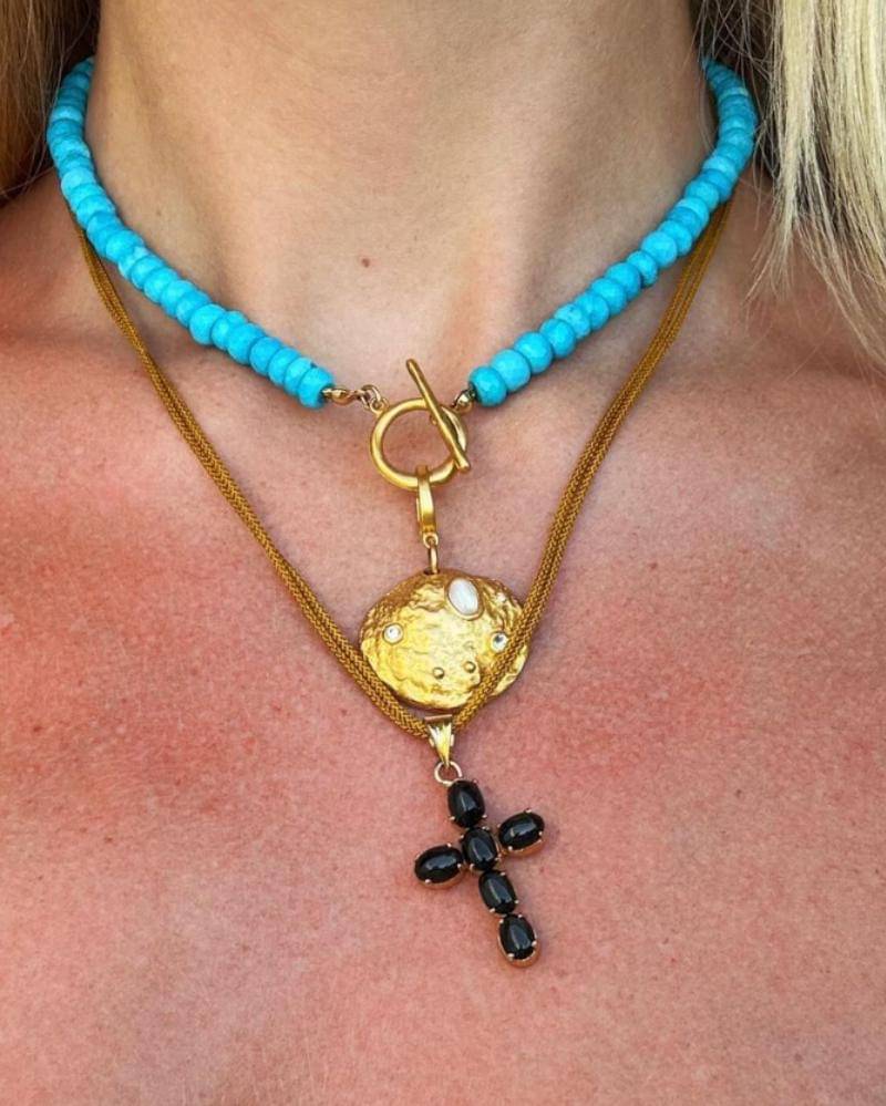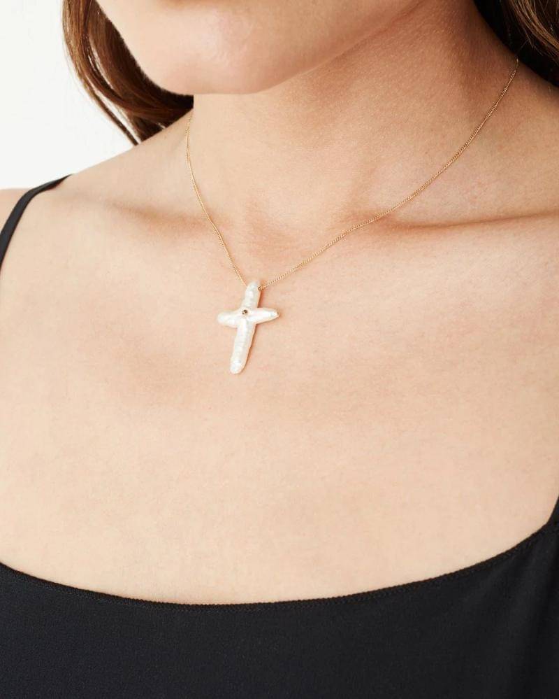 Bahkan Chan Luu, yang dikenal dengan estetika bohemiannya, telah menafsirkan ulang salib untuk pasar saat ini. Terinspirasi oleh era Y2K, salib mutiara barok Chan Luu, yang dihiasi dengan berlian, menawarkan perpaduan unik antara kemewahan dan kelembutan. Bentuk tidak beraturan dari setiap mutiara melembutkan geometri tradisional salib, membuatnya lebih serbaguna dan dapat dikenakan sebagai pernyataan mode yang menawan.