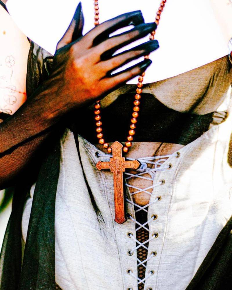Sebagai perancang kostum untuk band Chapell Roan, Alex Webb turut menjelaskan penyertaan salib dalam busana mereka di Hinterland Music Festival, sebagai formalitas saja. "Saya tidak bisa membuatnya berpakaian seperti biarawati tanpa kalung salib kayu paling norak yang bisa saya temukan." Ini menyoroti bagaimana simbolisme religius dapat dimasukkan ke dalam mode hanya untuk efek estetika, tanpa tujuan spiritual yang lebih dalam.
