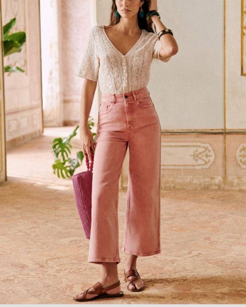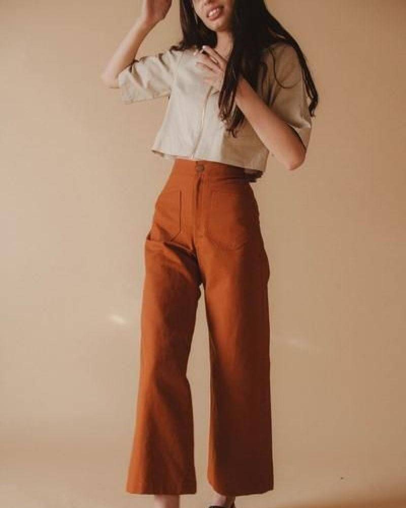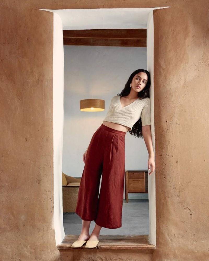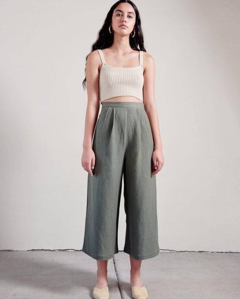 Pilih atasan crop top dengan bawahan celana kulot 7/8 untuk penampilan yang kasual.