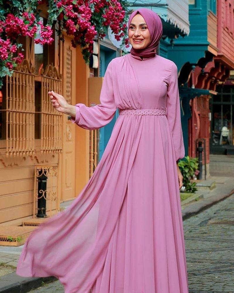 Siapa bilang warna ungu tidak bisa dipadankan dengan warna yang lembut? Faktanya, warna ungu cocok saja jika disatukan dengan dress baby pink.