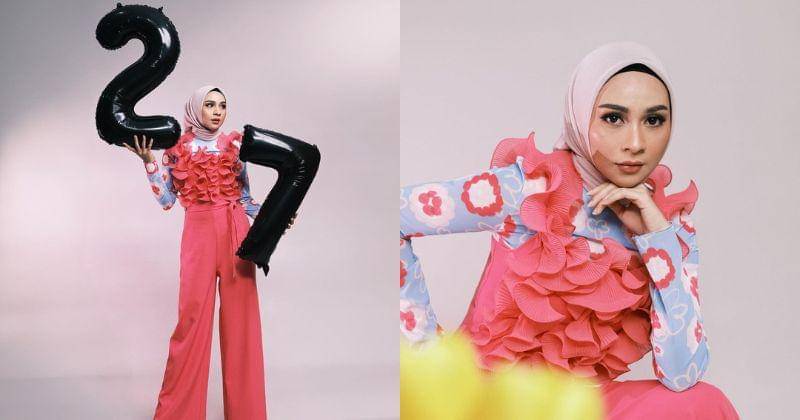Saat merayakan ulang tahunnya, Ira Nandha melakukan pemotretan sambil menggunakan jumpsuit warna merah muda dengan aksen ruffle di bagian dada.