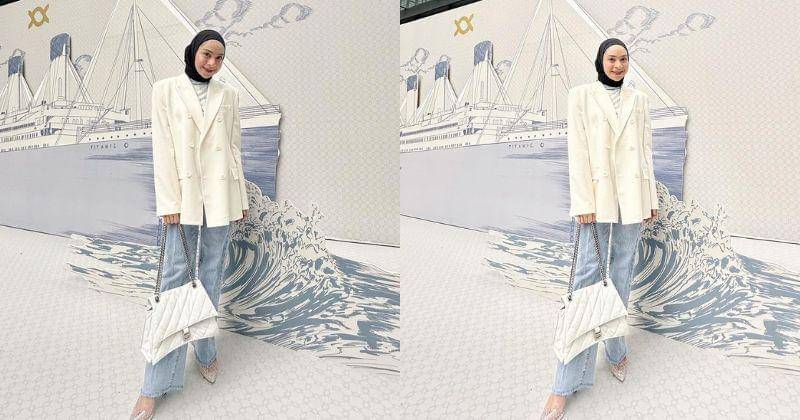 Untuk hijab, Ira menggunakan pashmina hitam yang dililitkan ke leher serta membawa handbag yang berwarna senada dengan blazer.