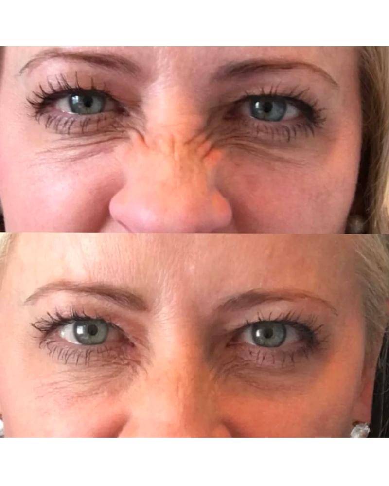 Otot yang rileks tidak bisa lagi bergerak, sehingga tidak terbentuk garis baru (dan garis yang sudah ada pun terlihat lebih samar). Suntikan ini biasanya dilakukan di kedua sisi hidung dengan dosis kecil, sekitar 2-4 unit (jauh lebih sedikit dibandingkan suntikan di antara alis yang rata-rata membutuhkan 22-24 unit, kata Dr. Rajagopal).