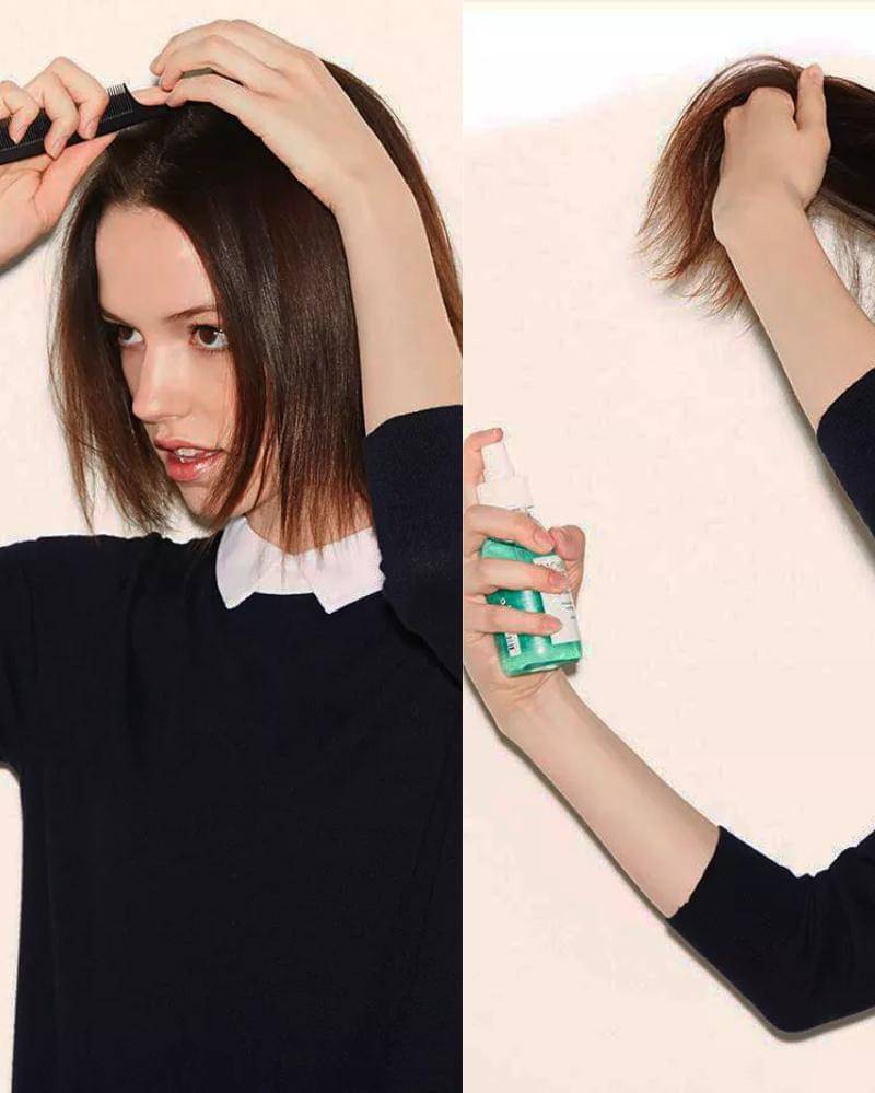 Setelah kamu membelah rambut, semprotkan semprotan garam laut yang bertekstur dari akar hingga ujung rambut.