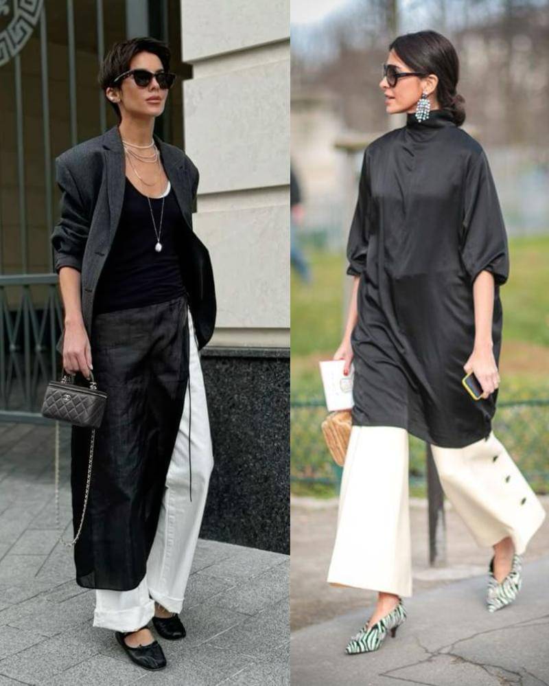 Kamu juga bisa mencoba tampilan monokrom dengan memadukan gaun krem ​​yang pas pada badan, dengan celana panjang krem ​​longgar dan parka sporty. Bentuk yang kontras akan menambah kedalaman pada pakaian yang sederhana.