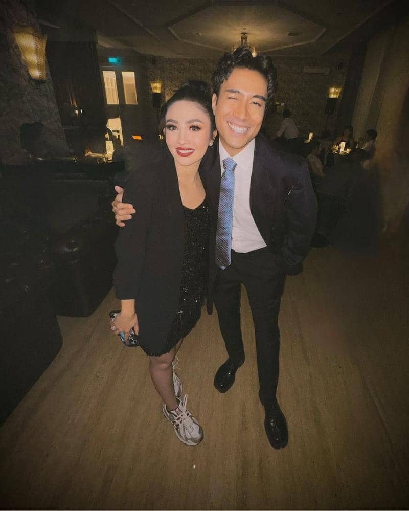 Kombinasi ini tidak hanya menonjolkan sisi glamournya, tetapi juga memberikan kenyamanan dan kebebasan bergerak, membuat Febby bisa menikmati malam spesialnya tanpa merasa terbebani dengan busana yang terlalu rumit.