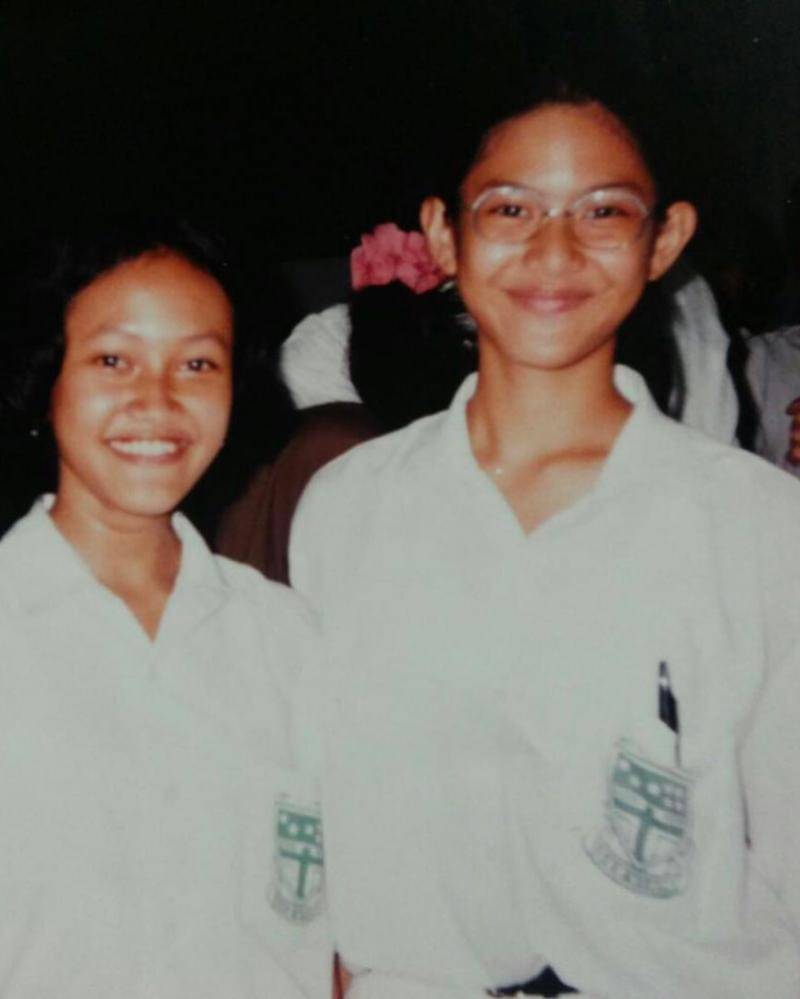 Berbeda sekali penampilan Dian saat bersekolah dengan sekarang, ya. Menariknya, saat SMP penampilan Dian dihiasi kacamata putih transparan. Meskipun begitu, senyum manis Dian yang saat itu berumur 13 tahun, tidak berubah hingga sekarang.