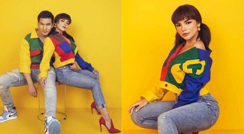 2. Outfit colorful Dinar dan Ridho dengan celana jeans