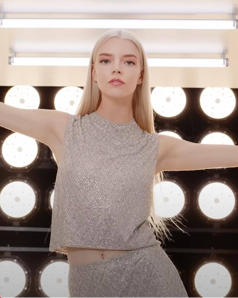 Anya Taylor-Joy tampil memukau dengan rambut pirangnya dan pakaian berwarna perak yang berkilauan. Satu set pakaian dengan desain argyle dengan manik-manik, memancarkan kilauan yang buat Anya tampak lebih mewah lagi.