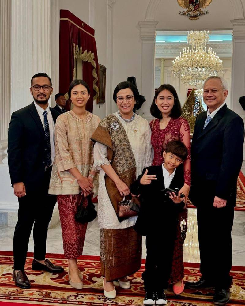 Dikenal akrab dengan sapaan Ibu Ani, Sri Mulyani telah berpengalaman menjadi menteri sejak era Kabinet Indonesia Bersatu di bawah kepemimpinan Susilo Bambang Yudhoyono (SBY). Pada hari pelantikannya, ia tetap tampil menawan sambil didampingi oleh keluarganya.