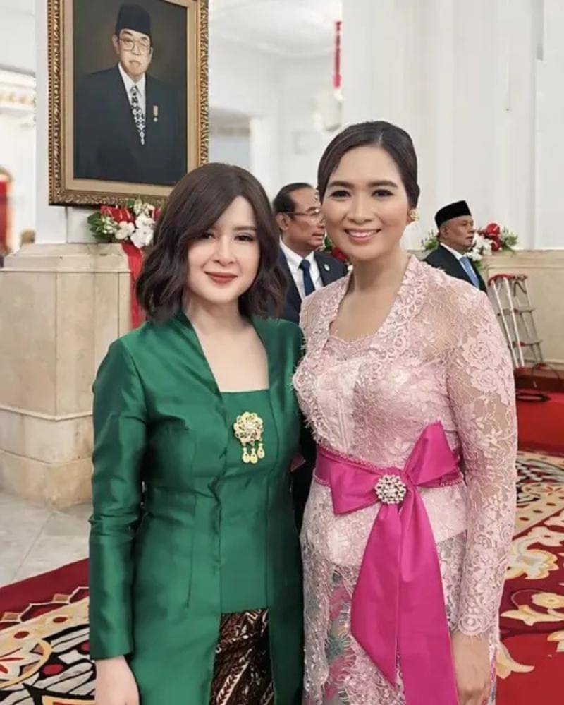 Dalam acara pelantikannya, ia tampil anggun dengan mengenakan kebaya encim berbordir berwarna beige yang memancarkan keindahan dan keanggunan.