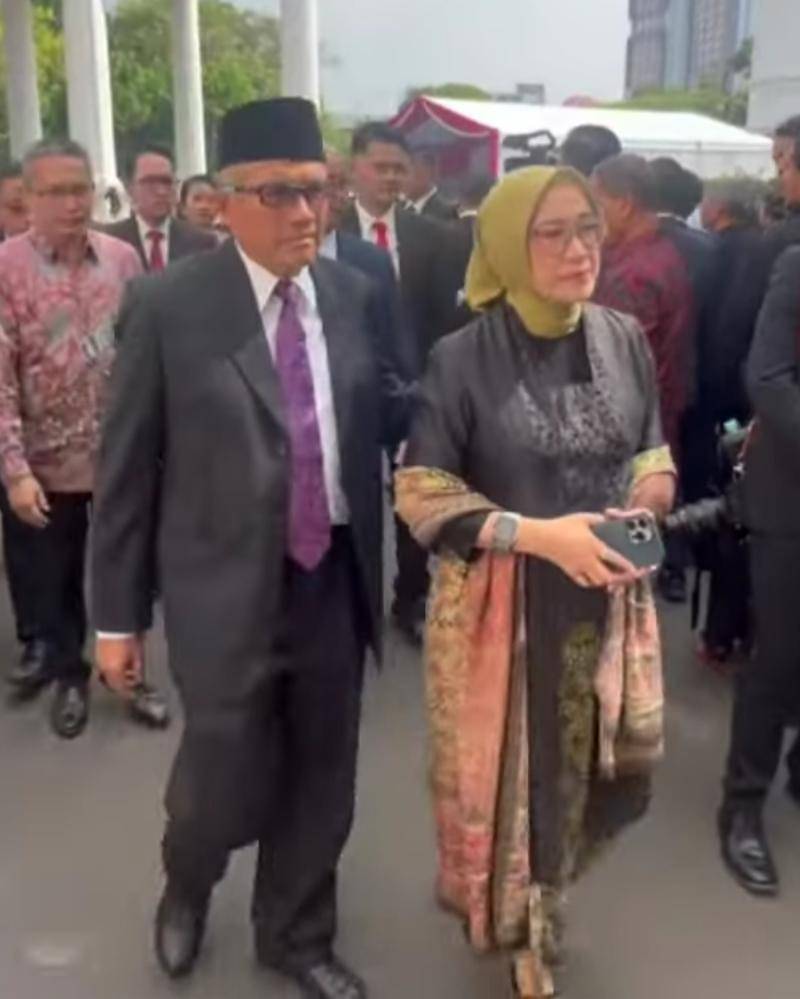 Kombinasi antara kebaya dan aksesori yang dipilihnya menciptakan harmoni yang menarik, memperkuat citranya sebagai sosok pemimpin yang modis. Dengan pilihan busana ini, Diana berhasil menarik perhatian dan menciptakan kesan positif pada hari istimewa tersebut.