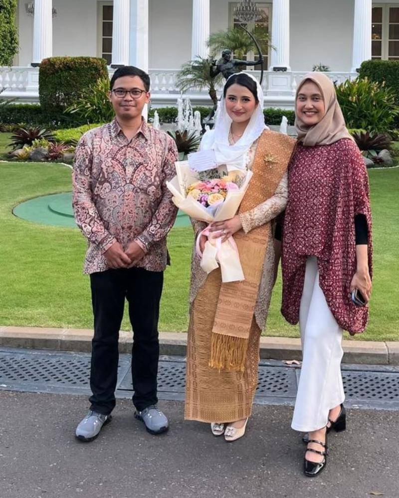 Tak lupa, ia menyempurnakan tampilannya dengan anting-anting yang stylish dan gaya rambut yang disanggul dengan modern. Semua elemen fashion yang dipilihnya menunjukkan perpaduan antara tradisi dan gaya kontemporer, membuatnya tampil menawan dalam momen penting tersebut.