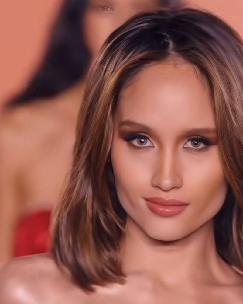 Bubah terlihat menggunakan warna cokelat yang dominan di kelopak mata Cinta, membuat gaya ala smokey eye yang tidak menor, tapi justru elegan. Selain itu, pipi Cinta terlihat semakin terstruktur dengan contour dan blush yang tepat. Hasil makeup pun terlihat menarik, ditutup dengan bibir berwarna pink kemerahan.