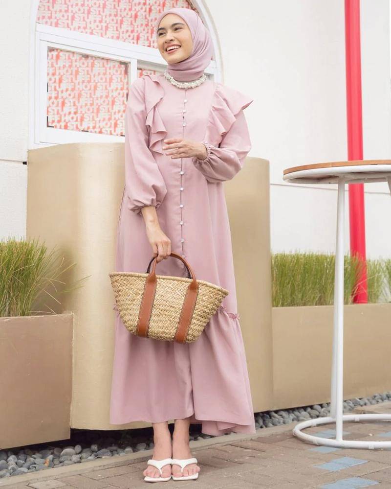 Warna dusty pink identik dengan warna yang lembut sehingga jika dipadukan dengan jilbab putih akan menambahkan kesan yang dreamy.