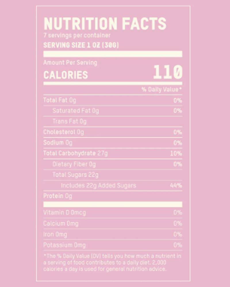 Karena bisa dimakan, maka produk ini dilengkapi dengan kandungan gizi per porsi. Seperti diketahui, lingerie ini tidak memiliki trans fat atau saturated fat. Tapi karbohidratnya cukup tinggi yaitu 10%.