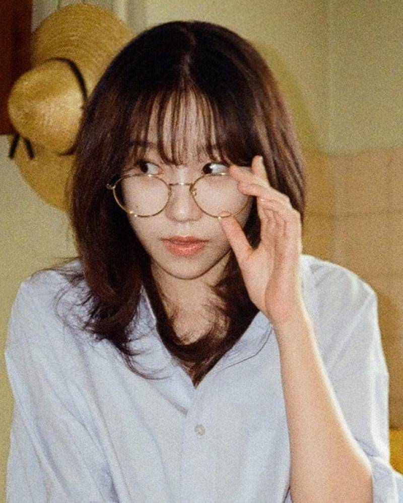 Yu Ri hampir tidak pernah terlihat mengenakan kacamata. Wajah imutnya hanya dibingkai oleh poni yang panjang dan menggemaskan.