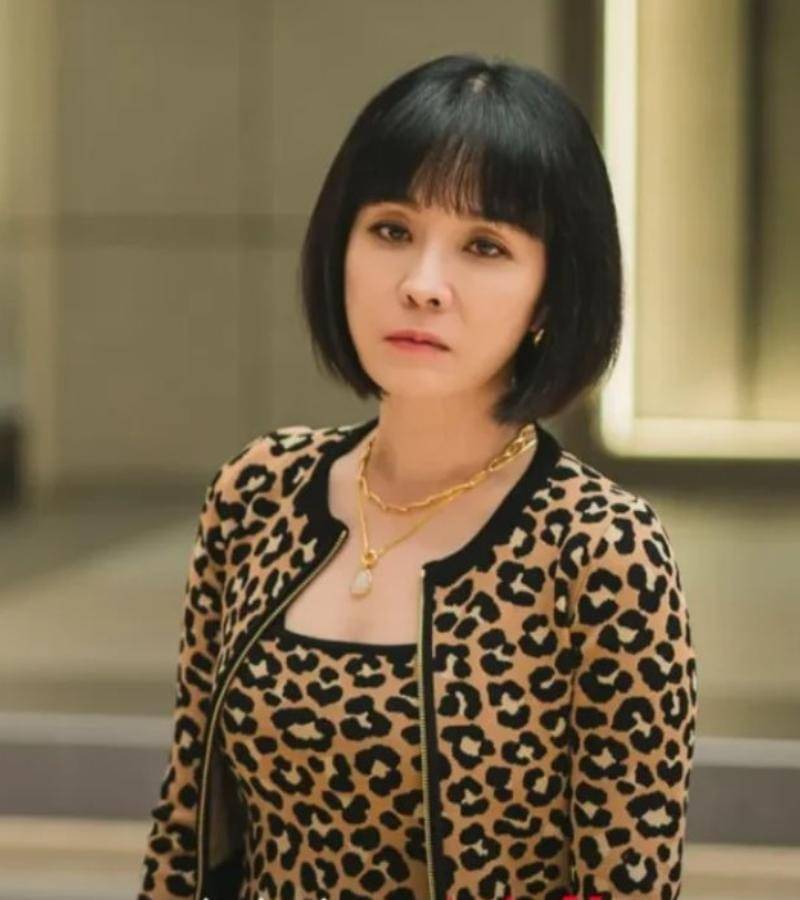 Penampilan Kim Jung Nan dalam drama terbarunya Queen of Tears ini, tampil nyentrik dengan balutan pakaian motif macan dan potongan rambut bob.