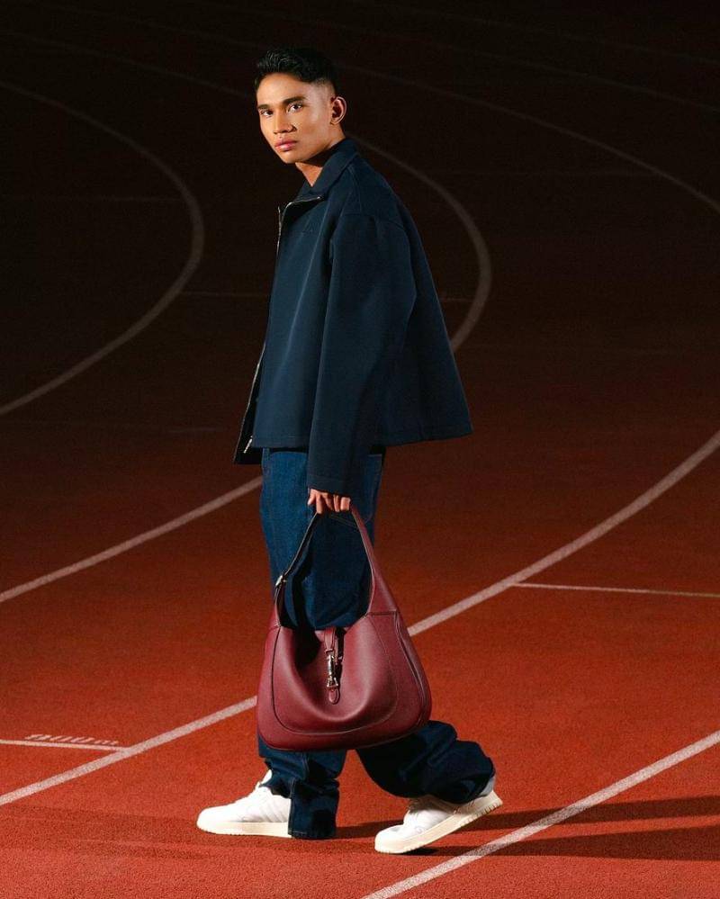 Gaya Marselino semakin sempurna dengan tambahan tas stylish berwarna merah gelap, dengan desain kekinian dan detail yang modern. Penampilan Marselino bersama rumah mode ternama ini, turut mendapatkan banyak pujian, lho.