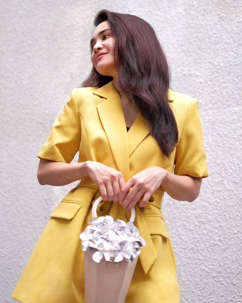 Aktris dan penyanyi yang sedang jadi pembicaraan warganet ini tampil stylish dan fancy dengan blazer berwarna kuning.