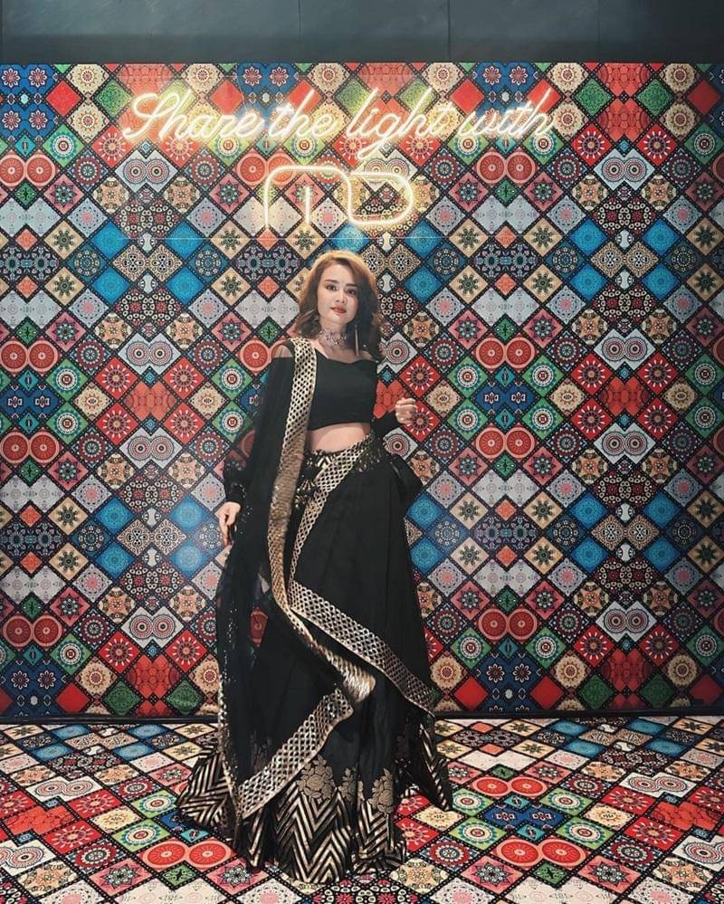 Dalam acara Diwali, anak dari Muhammad Ruchiman dan Missi Waselly ini terlihat mengenakan sari yang mewah. Sari berwarna hitam dengan detail motif gold ini memberikan kesan red carpet yang kuat.