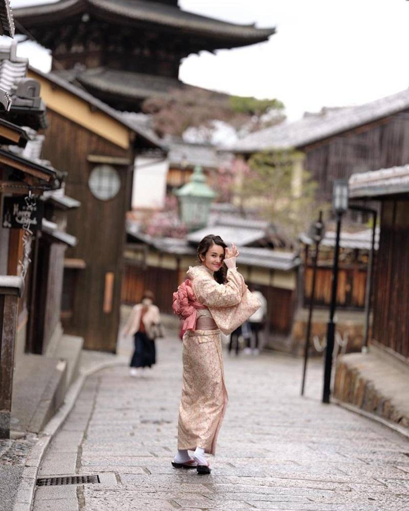Saat jalan-jalan ke Jepang, aktris yang juga banyak membintangi sinetron ini sempat mengenakan baju tradisional Jepang.