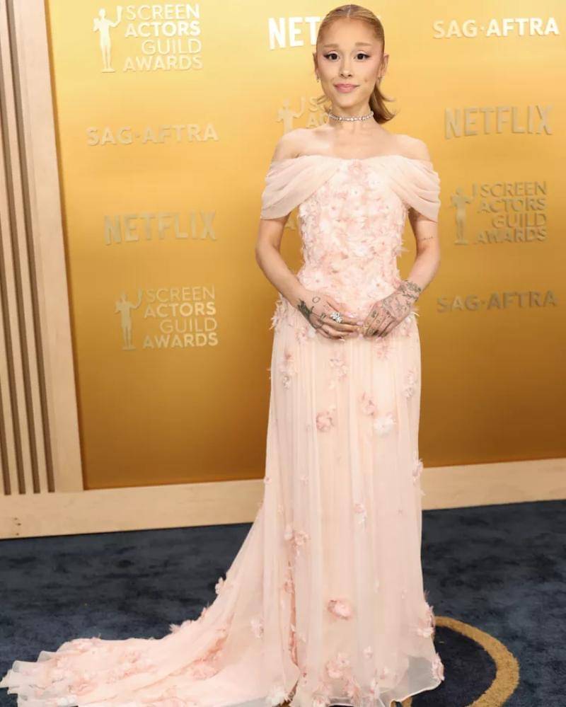 Ariana Grande, yang melanjutkan kolaborasinya dengan Loewe, tampil memukau di karpet merah SAG Awards 2025. Gaun bertema bunga berwarna merah muda yang dibuat khusus oleh Jonathan Anderson, tampak seperti penghormatan yang halus untuk perannya sebagai Glinda dalam film "Wicked".